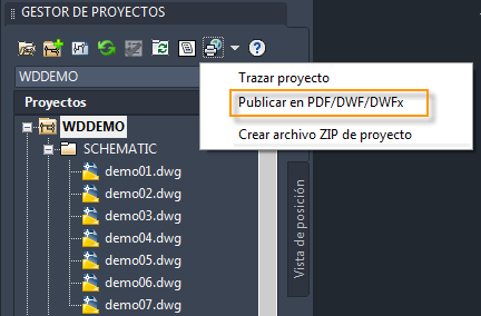 Utilice el botón Publicar/trazar en el Gestor de proyectos para imprimir el proyecto.