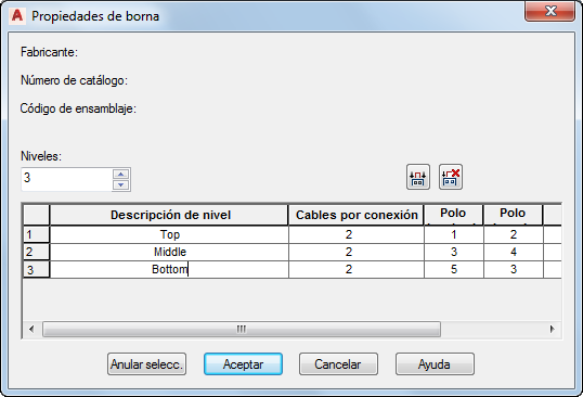 Defina una borna de varios niveles mediante la asignación de las propiedades correspondientes.