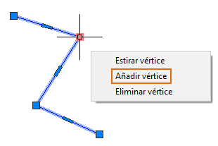 Varias opciones están disponibles cuando selecciona una polilínea y se desplaza sobre los pinzamientos.