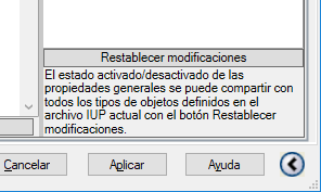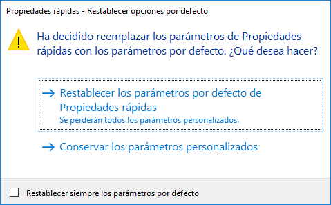 Restablecimiento de los parámetros por defecto de las Propiedades rápidas