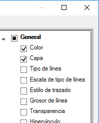 - En el panel Propiedades, active las casillas adyacentes a las propiedades generales que desea que la paleta Propiedades rápidas muestre para todos los tipos de objeto.