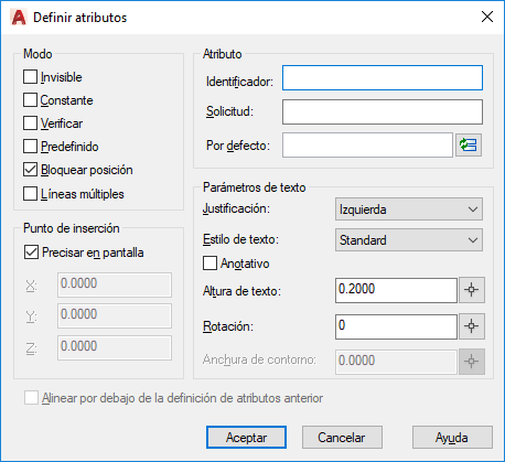 Asigna un valor fijo a los atributos al insertar el bloque. Este parámetro se utiliza para la información que nunca cambia.