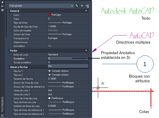 Los objetos de anotación proporcionan información acerca de un elemento, como la longitud de un muro, el diámetro de un fiador o una llamada de detalle. Por lo general, la escala de los objetos de anotación se ajusta de manera distinta a las vistas del dibujo y de esta escala depende el aspecto de los objetos de anotación al ser trazados.