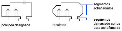 Solo los segmentos que tienen la longitud suficiente para acomodar el chaflán se achaflanan.