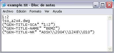 En lugar de seleccionar manualmente atributos de marco de dibujo, escala y cuadro de rotulación durante el uso del comando AMTITLE, los archivos *.tit permiten predefinir estos parámetros y obtenerlos automáticamente.