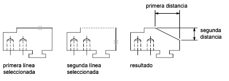 Una esquina se puede achaflanar al especificar las distancias en cualquiera de los lados del chaflán.
