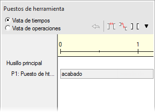 Utilice la Vista de tiempos para acceder a una cronología de las operaciones de cada puesto de herramienta en el documento.