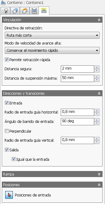 Si esta opción está activada, las rampas se inician y finalizan tangencialmente en los tres ejes.