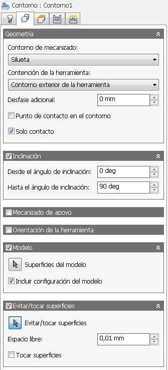 Si está activada, puede seleccionar las superficies que deben evitarse. Las rutas de herramienta permanecen alejadas de las superficies seleccionadas una distancia especificada.