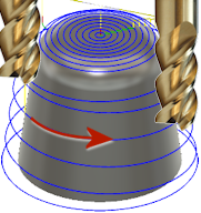 Esta opción invierte la dirección de la ruta de herramienta en comparación con el parámetro Concurrente para generar una ruta de herramienta de fresado convencional.