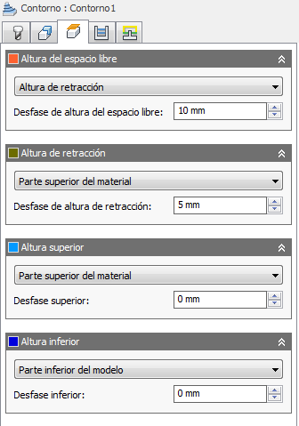 El Desfase de altura de retracción se aplica y guarda relación con la selección de Altura de retracción en la lista desplegable anterior.