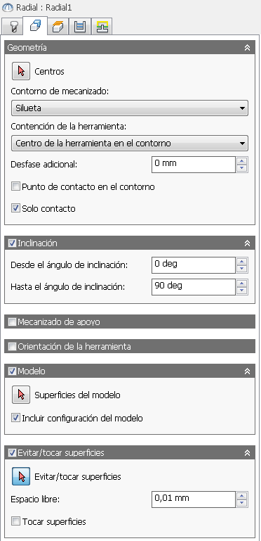 Cuando se selecciona, contiene rutas de herramienta basadas en un rango de ángulos especificado.