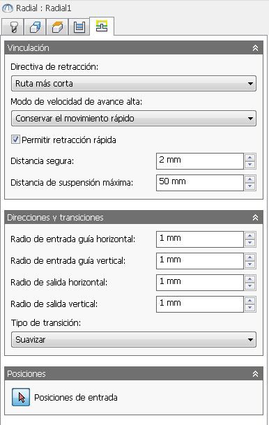 El radio de suavizado del arco vertical avanza desde el movimiento de entrada hasta la ruta de herramienta y desde ella.