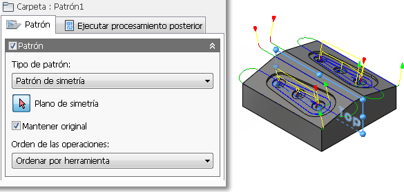 - Por último, en el menú desplegable Orden de las operaciones:, elija si el patrón debería reordenar las operaciones en función de la herramienta u operación, o bien mantener el orden de las operaciones dentro del patrón.