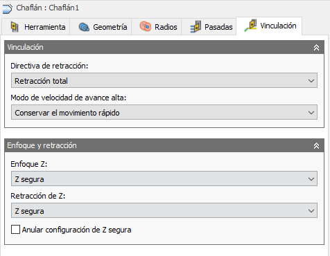 Retracción Z: permite definir la posición de la herramienta tras completar la ruta de herramienta.