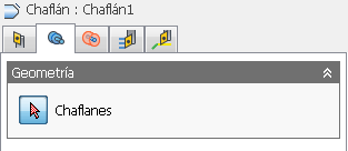 Utilice el botón de selección Chaflanes para seleccionar una o más aristas circulares para la creación de chaflanes.