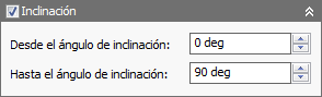 El confinamiento de la inclinación se especifica al definir los parámetros Desde el ángulo de inclinación y Hasta el ángulo de inclinación, que se encuentran en la sección Pendiente en la ficha Geometría.