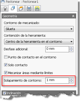 El parámetro Solapamiento de contorno