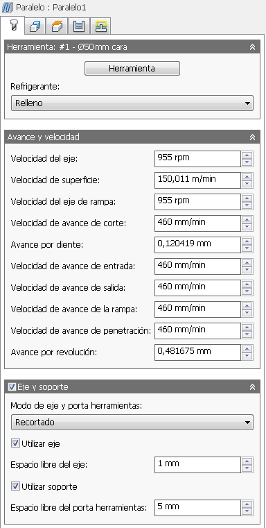 Parámetros de corte del eje y velocidad de avance.