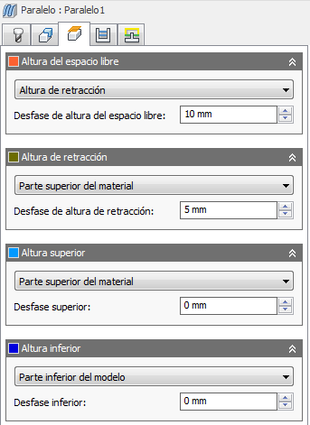 El Desfase de altura de retracción se aplica y guarda relación con la selección de Altura de retracción en la lista desplegable anterior.