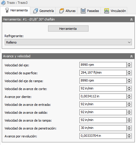 Parámetros de corte del eje y velocidad de avance.