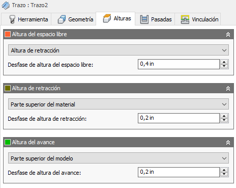 El Desfase de altura de retracción se aplica y es relativo a la selección de Altura de retracción en la lista desplegable anterior.