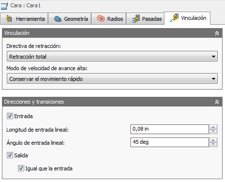 Especifica el radio del movimiento de entrada al inicio de una pasada de corte.