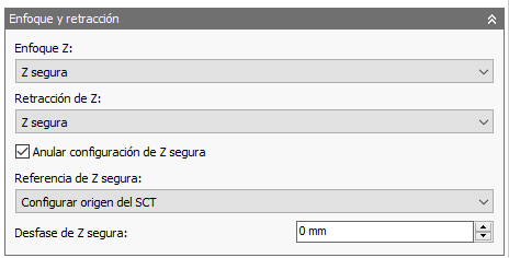 Referencia de Z segura: seleccione la nueva posición de referencia para definir la retracción del eje Z seguro.