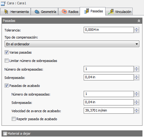 Para las operaciones de acabado, es habitual establecer el valor por defecto en 0 mm / 0 in, es decir, no se deja material.