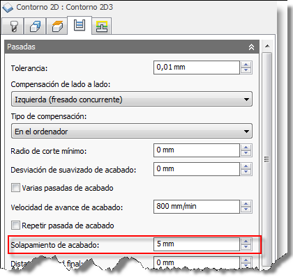 Contorno con solapamiento de acabado definido en 5 mm