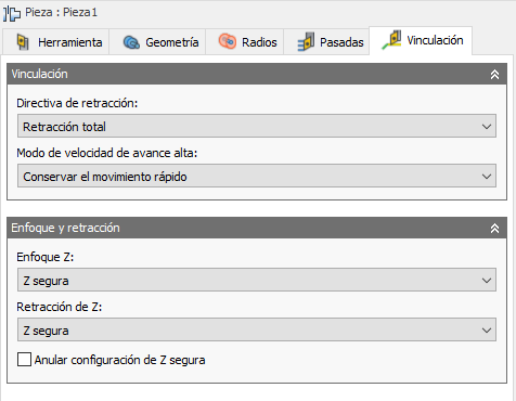 Retracción Z: permite definir la posición de la herramienta tras completar la ruta de herramienta.