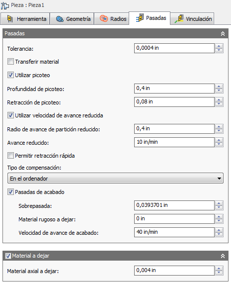 Active esta opción para realizar una pasada de acabado antes de cortar la pieza.