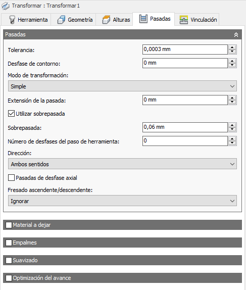 Para las operaciones de desbaste, se deja una pequeña cantidad de material por defecto, que se puede eliminar posteriormente mediante una o varias operaciones de acabado.