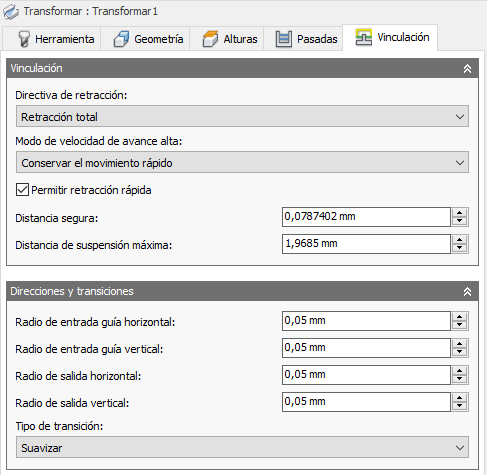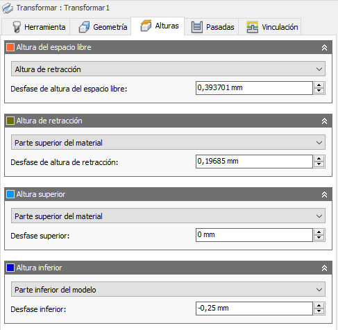 El Desfase de altura de retracción se aplica y guarda relación con la selección de altura de retracción en la lista desplegable anterior.
