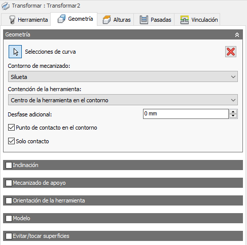 Utilice la contención de la herramienta para controlar la posición de las herramientas en relación con el contorno o los contornos seleccionados.