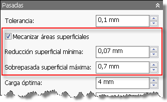 Cuando está activado, el mecanizado de áreas superficiales se controla con dos parámetros: