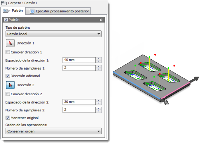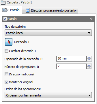 - Por último, en el menú desplegable Orden de las operaciones:, elija si el patrón debería reordenar las operaciones por herramienta o por operación, o bien mantener el orden de las operaciones en el patrón.