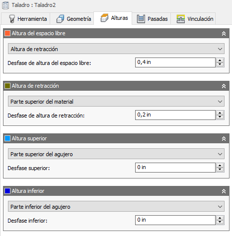 El Desfase de altura de retracción se aplica y guarda relación con la selección de Altura de retracción en la lista desplegable anterior.