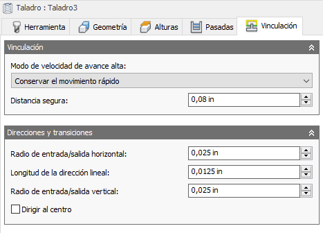 Radio del arco vertical que suaviza el movimiento de entrada a medida que avanza hasta la propia ruta de herramienta.