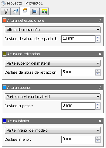 El Desfase de altura de retracción se aplica y guarda relación con la selección de Altura de retracción en la lista desplegable anterior.