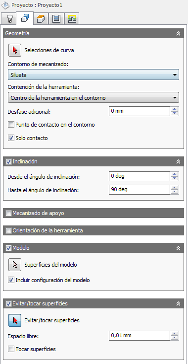 Desde el ángulo de inclinación se define desde el plano de 0° (horizontal). Solo se mecanizan las áreas iguales o mayores que este valor.
