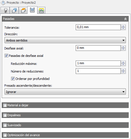 Para las operaciones de desbaste, se deja una pequeña cantidad de material por defecto, que se puede eliminar posteriormente mediante una o varias operaciones de acabado.