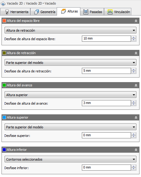 El Desfase de altura de retracción se aplica y es relativo a la selección de Altura de retracción en la lista desplegable anterior.