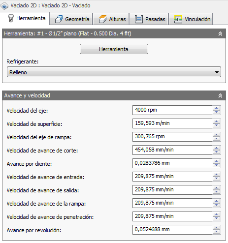 Active esta opción para crear una ruta de herramienta de movimiento de espiral constante para la cajera. Esto puede proporcionar un funcionamiento suave de la máquina.