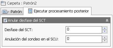 Independientemente del tipo de patrón y antes de finalizar la operación de patrón, haga clic en la ficha Ejecutar procesamiento posterior del cuadro de diálogo Operación para acceder a la casilla de verificación Anular desfase del SCT.