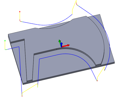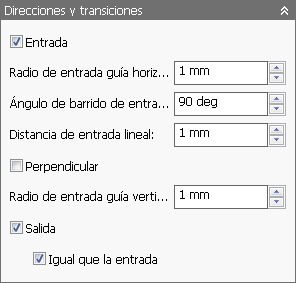 Cambie el valor de los parámetros Entrada y Salida para utilizar un barrido de 0 grados. De este modo, se suelta el arco de entrada horizontal y se realiza solo una dirección lineal, tangencial a la pasada de corte. El arco vertical se conserva.