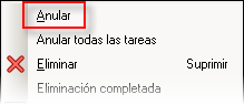 Puede anular la generación de la operación haciendo clic con el botón derecho en la operación en el Administrador de tareas y eligiendo Anular en el menú contextual emergente: