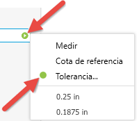 Puede especificar las tolerancias de los parámetros y estas se guardarán como valores predefinidos. Haga clic en la flecha desplegable, seleccione Tolerancia… y especifique el tipo de tolerancia y el rango. Guarde el valor predefinido con un nombre que le permita identificarlo.