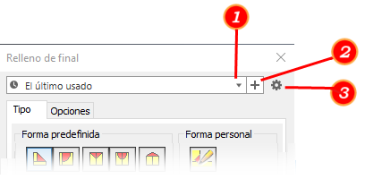 El valor predefinido El último usado se compone de los parámetros utilizados en la última operación predefinida de ese tipo. Este valor se muestra cuando no se ha guardado ningún valor predefinido para una operación que se acabe de crear. Puede utilizar el valor predefinido El último usado tal cual o modificar sus valores. En cualquier momento puede guardar el valor predefinido cambiado por un valor predefinido nuevo. Para ello, haga clic en