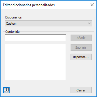 Creación, adición de existentes o eliminación de diccionarios personalizados